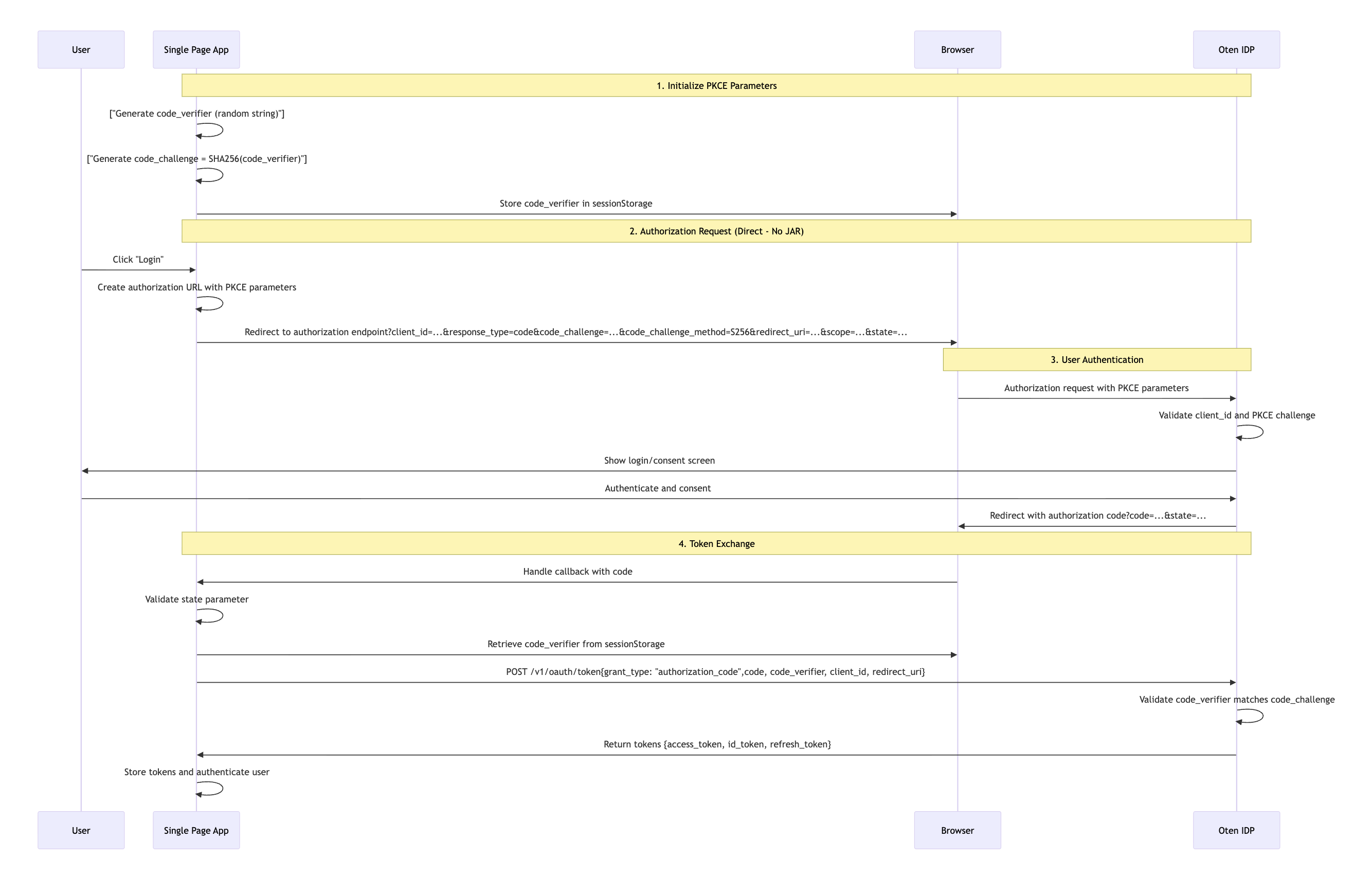 This comprehensive guide covers implementing PKCE (Proof Key for Code Exchange) for Single Page Applications (SPAs) and native mobile applications using Oten IDP.